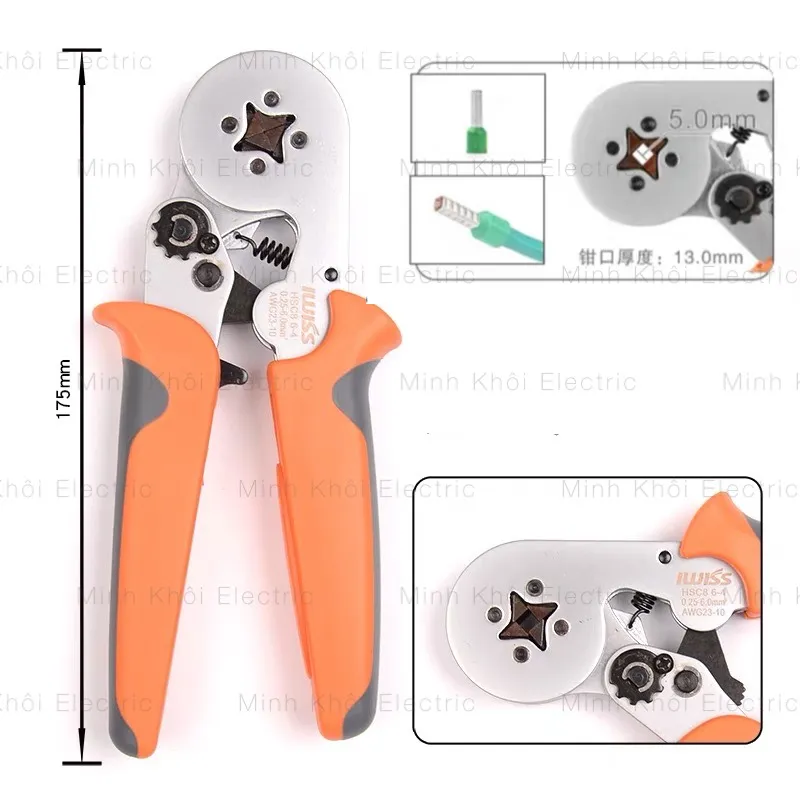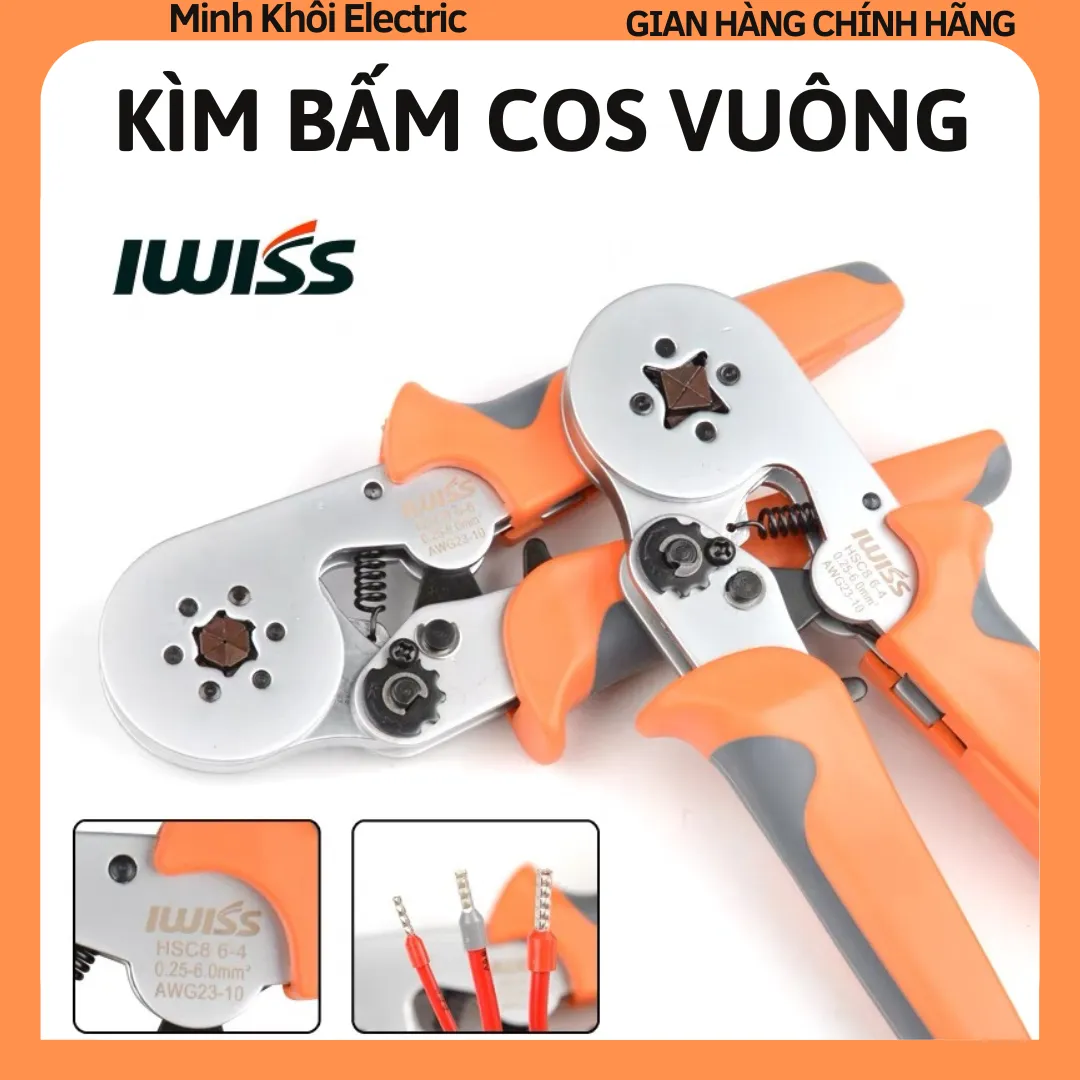 Kìm bấm cos vuông IWISS HSC8 6-4 tự điều chỉnh cos ống tròn cos pin