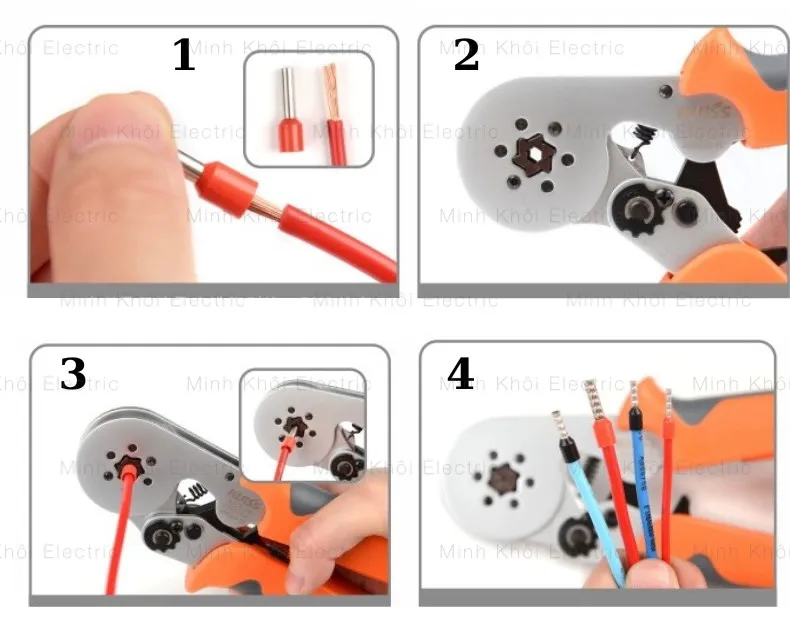 * Dùng để bấm các đầu cos từ 0.25 – 6.0mm², tự điều chỉnh theo đường kính khác nhau