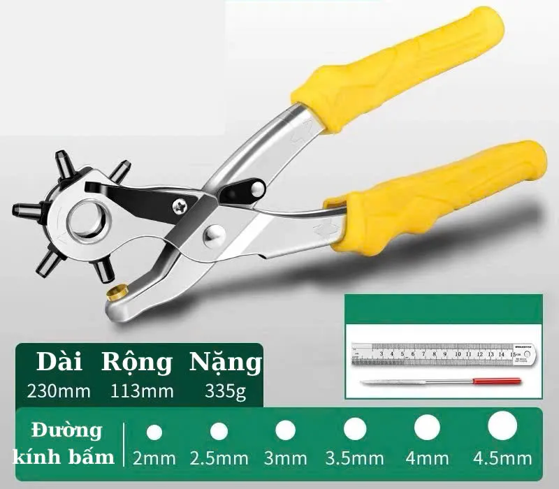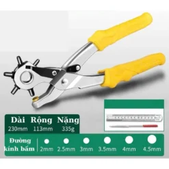 Kìm bấm lỗ thắt lưng chính hãng R’Deer đa năng chuyên dùng đục lỗ với 6 kích cỡ lỗ đục bao gồm: 2mm; 2,5mm; 3mm; 3,5mm; 4mm; 4,5mm phù hợp cho việc thường xuyên đục lỗ thắt lưng, dây nịt, dây da đồng hồ, bìa giấy. Đây thực sự là một sản phẩm tuyệt vời giúp bạn đục lỗ cho đồ dùng với lỗ bấm đẹp mà không làm hỏng đồ của bạn.