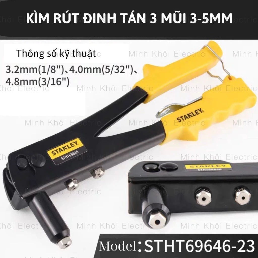 KÌM RÚT ĐINH TÁN 3 MŨI STANLEY MỸ 3-5MM | KÌM RÚT RIVE THÉP HỢP KIM, TAY CỘNG LỰC KHỎE RÚT ĐINH RIVE 69-646