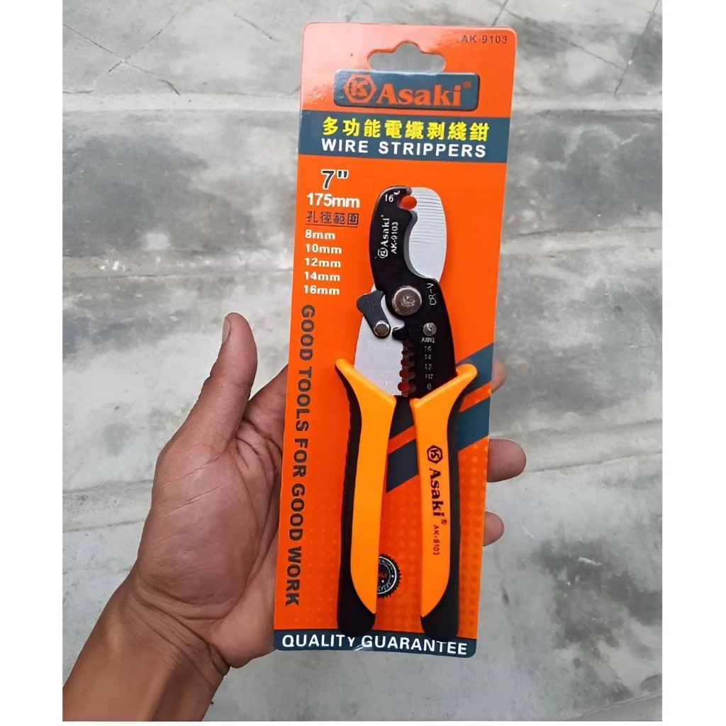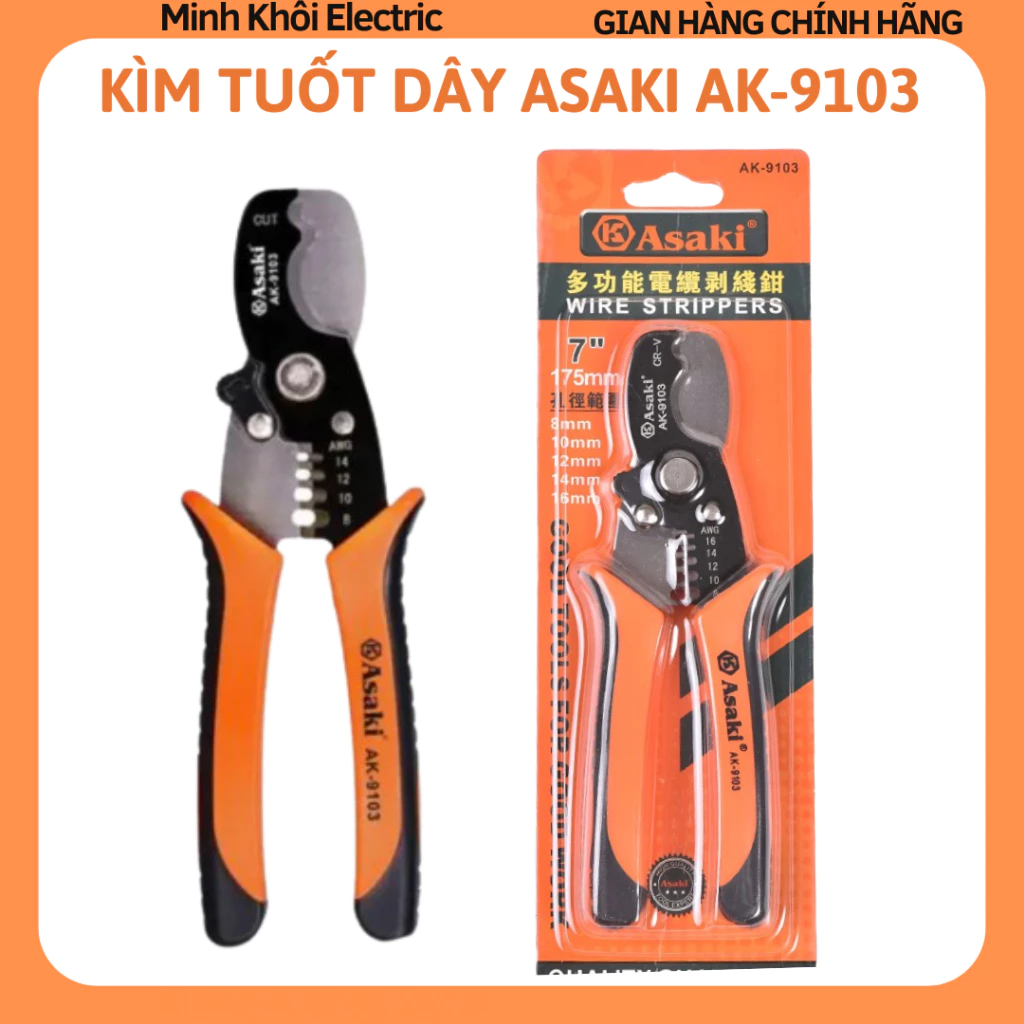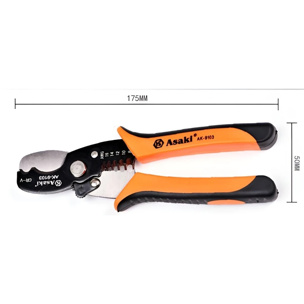 Kìm cắt cáp kềm tuốt dây đa năng 2 trong 1 Asaki AK-9103 7 inch/ 175mm