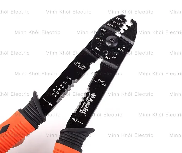 → Kiềm có thể tuốt và bấm linh hoạt các dây có phạm vi kích thước như: 0.5, 0.75, 1.25, 2.0, 3.0, 5.0mm2.