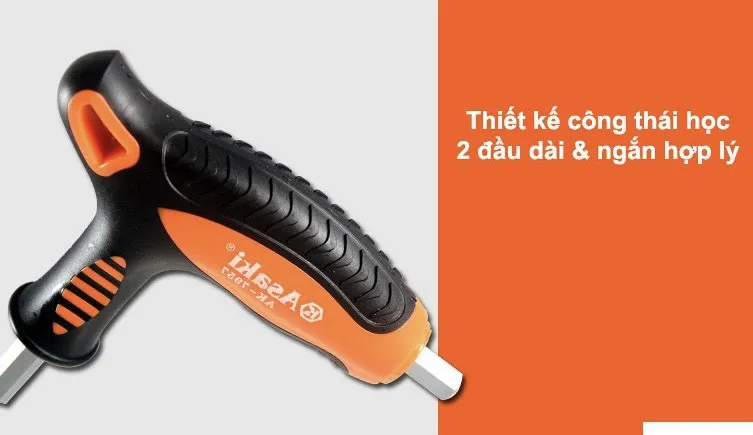 Lục giác bi chữ T 2 đầu thép CR-V cao cấp Asaki là một trong những dụng cụ cầm tay phổ biến được rất nhiều người sử dụng. Sản phẩm nhỏ gọn cùng với đó là sự tiện lợi giúp tháo mở những bu lông có lỗ lục giác chìm và lỗ hình bi chìm một cách nhanh chóng, dễ dàng.