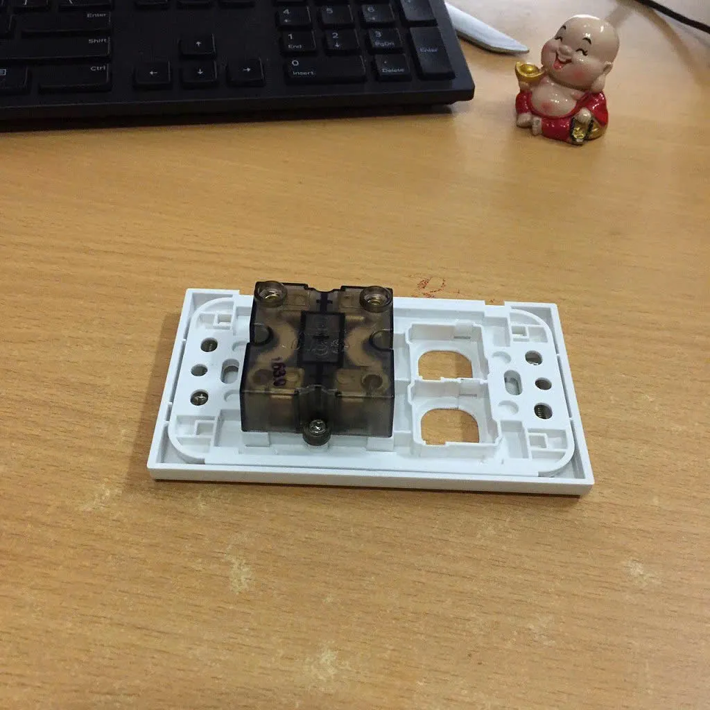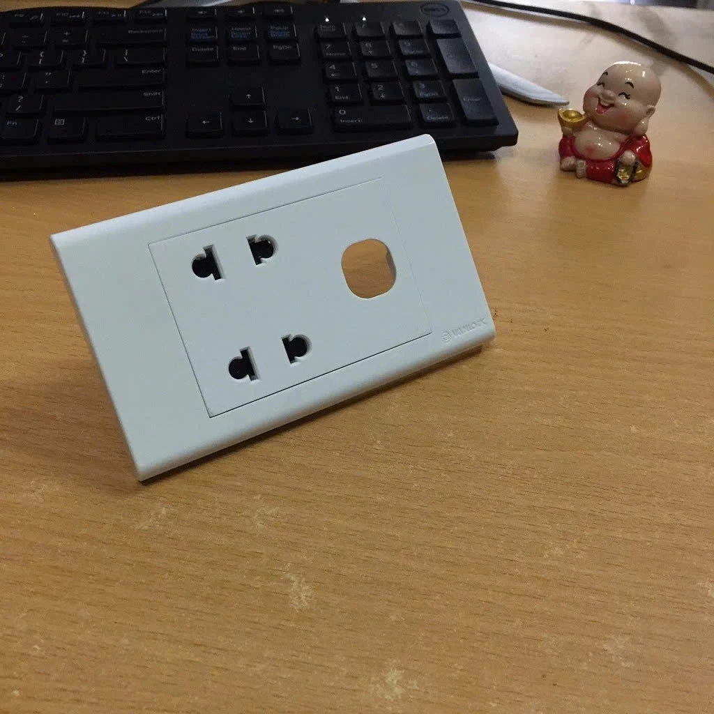 – Đế ổ cắm làm bằng nhựa Polyamide chống cháy – nguyên chất (không có mùi khét như nhựa phế liệu, tái sinh).