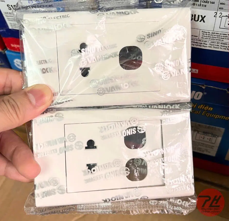 Tên Sản Phẩm: 2 ổ cắm 2 chấu + 1,2 lỗ S18 – 16A SINO