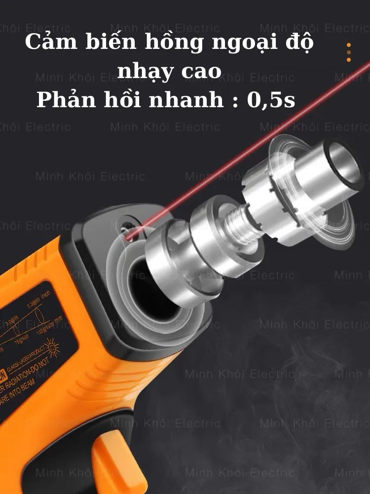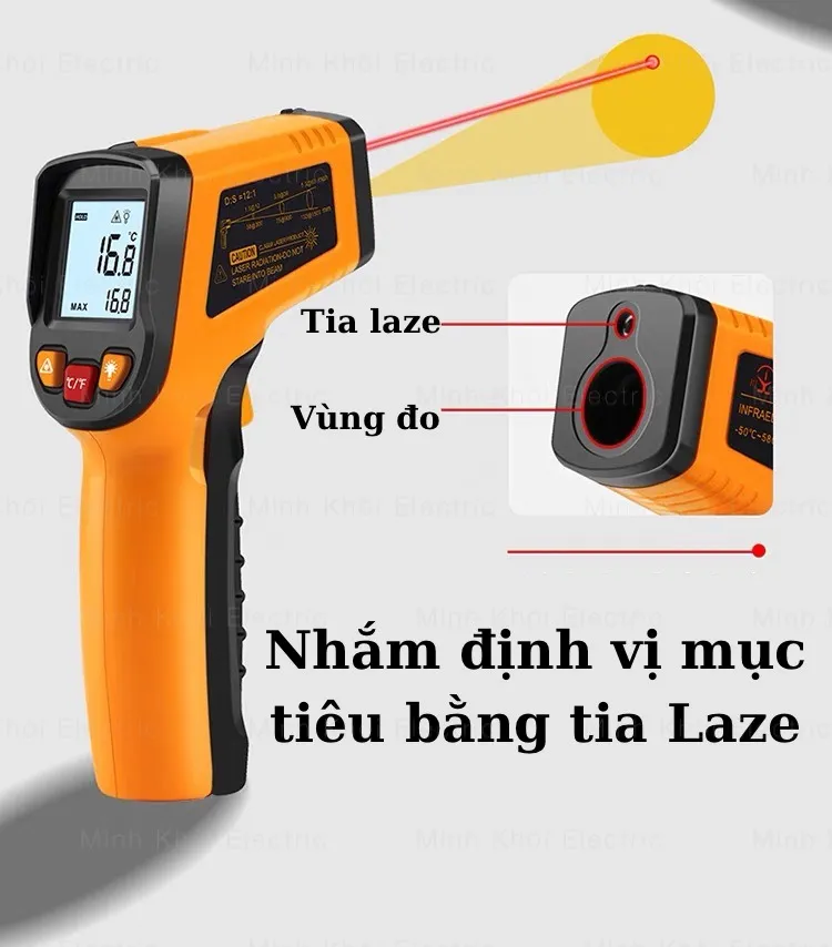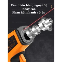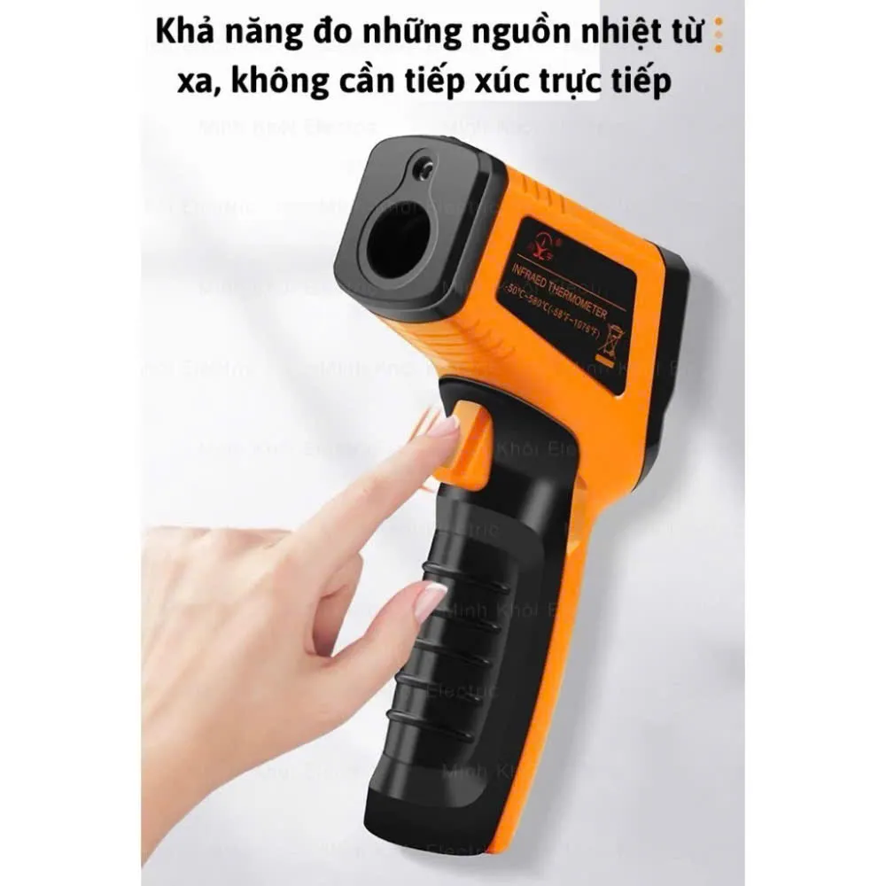 Súng đo nhiệt độ đo nhiệt độ không cần tiếp xúc (đo từ xa): Bên cạnh giới hạn dải nhiệt độ đo lường cao, sản phẩm còn cho phép người dùng có thể đo đạc được các đối tượng ở xa mà không cần phải tiếp xúc trực tiếp nhờ vào ứng dụng công nghệ tia hồng ngoại trong kỹ thuật đo lường.