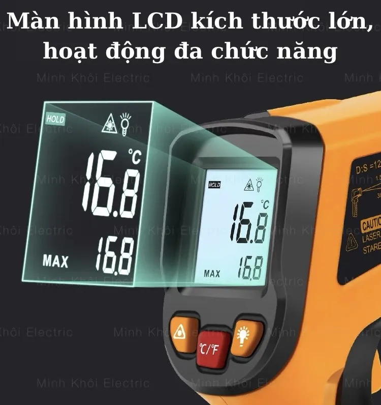Đo đạc đơn giãn, nhanh chóng và chính xác: Người dùng chỉ cần ngắm và bóp cò. Tia hồng ngoại sẽ hướng tới vật cần đo và màn hình LCD ngay lập tức sẽ hiện thị chính xác thông số nhiệt độ chưa đầy 1s.
