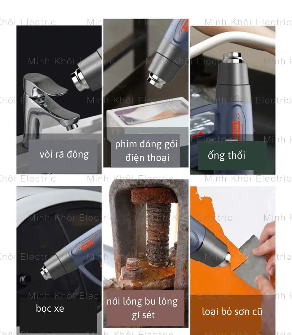 – Làm co các vật liệu bao gói bằng nhựa – Loại bỏ các lớp sơn cũ trên bề mặt