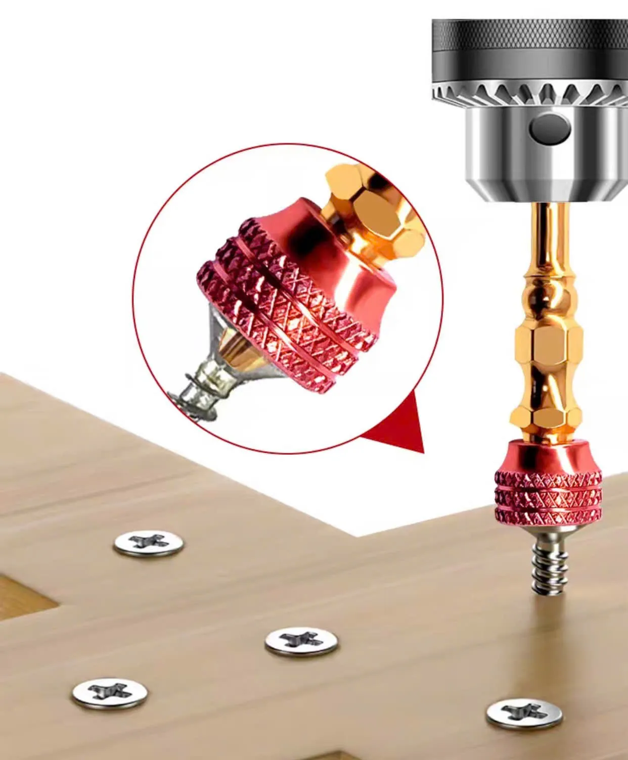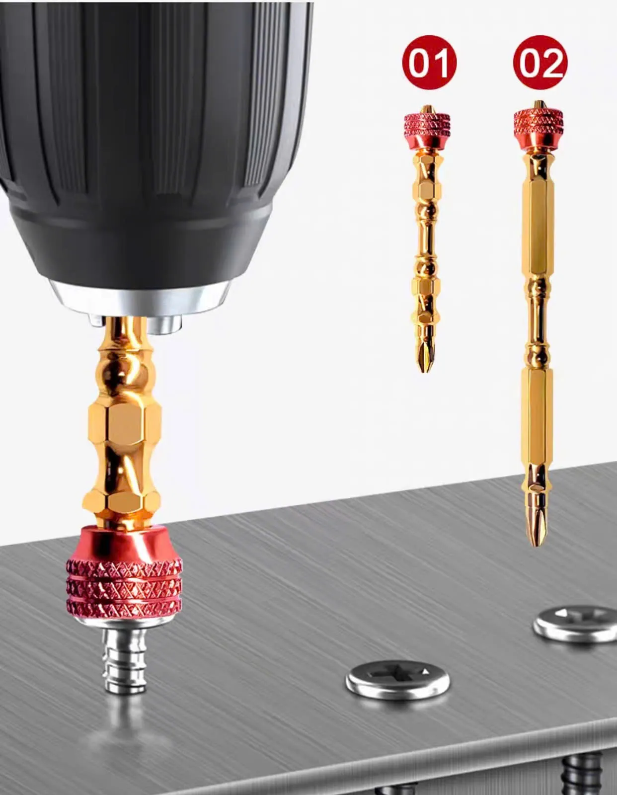 – Vòng kim loại từ tính chống trượt mạnh mẽ, có thể hút chặt ốc vít, giảm hư hại cho đầu, tăng tuổi thọ.
