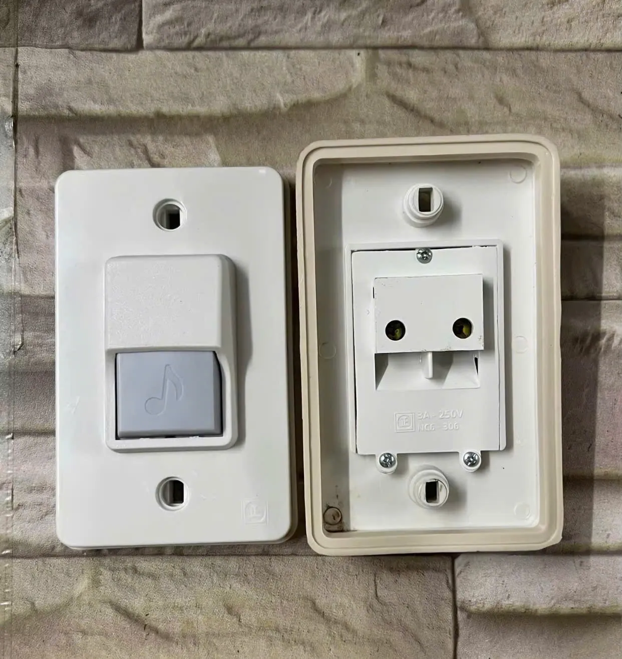 Bộ sản phẩm gồm có hộp chuông báo và một nút nhấn.