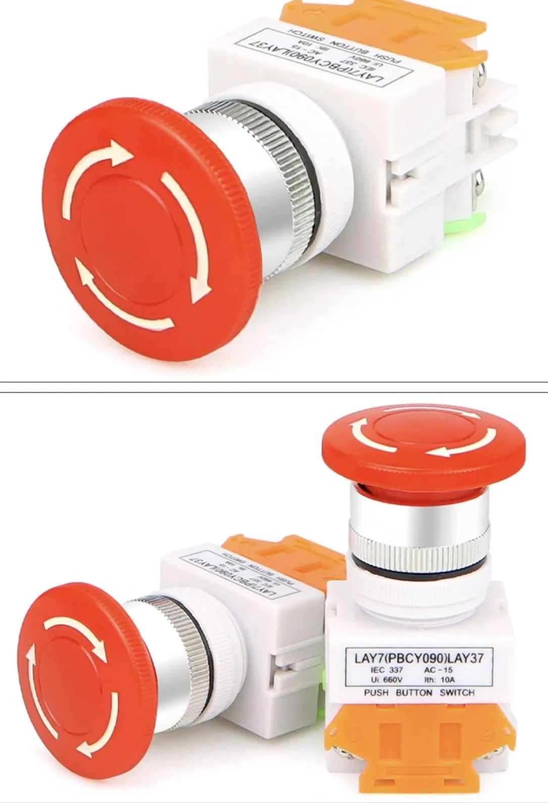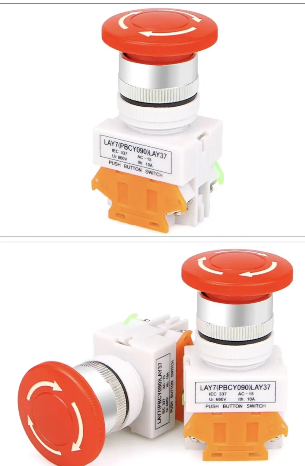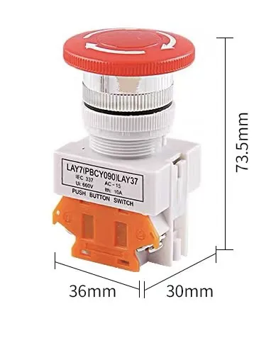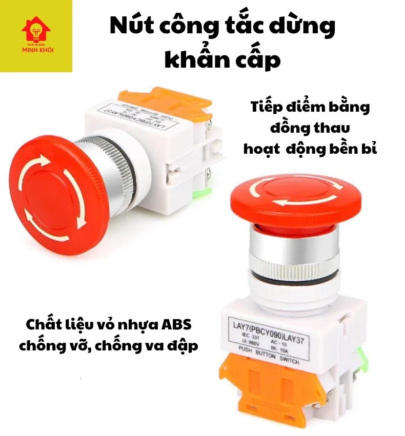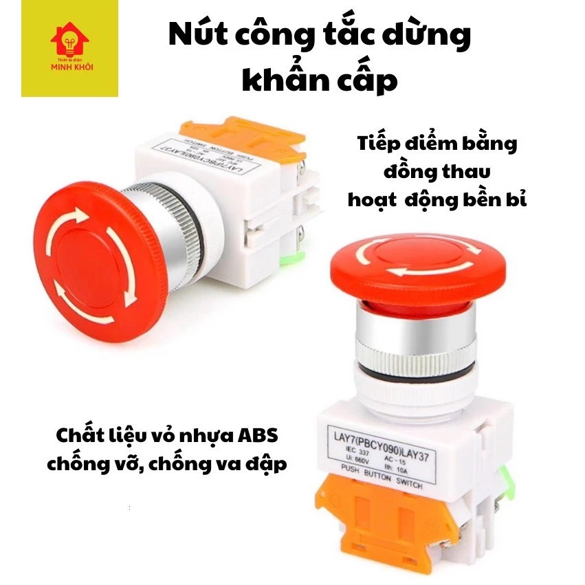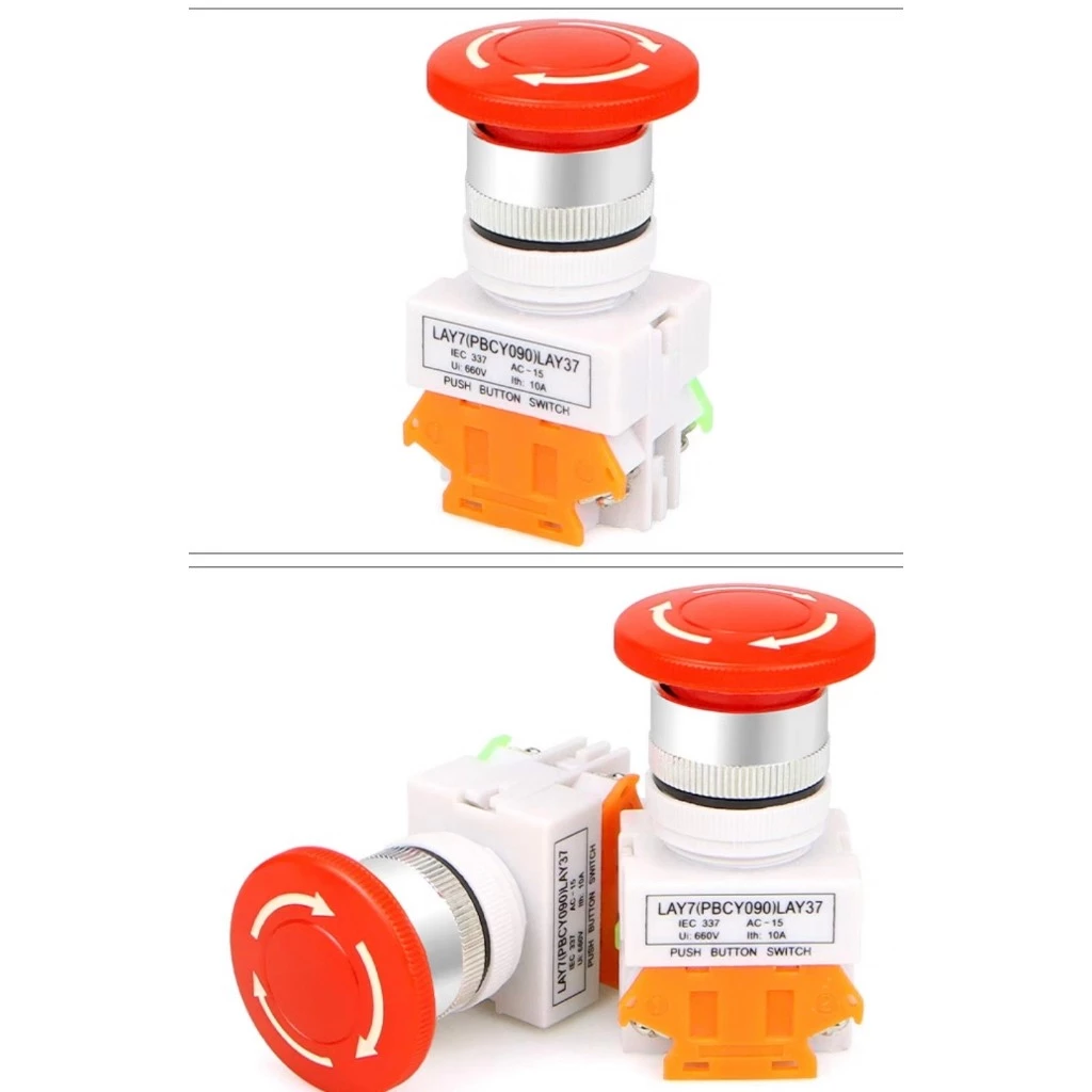 Công tắc dừng khẩn cấp LAY37 là loại công tắc dùng để ngắt điện tức thời do có 1 cặp tiếp điểm thường đóng. Công tắc có diện kích thước lớn nên dễ thao tác bằng việc nhấn hoặc đập vào một cách nhanh chóng để dừng hệ thống (hoặc bật hệ thống bảo vệ). Khi cần vận hành lại thì xoay công tắc theo chiều mũi tên. Công tắc được gia công tốt, độ bền tương đối cao, lắp đặt dễ dàng.