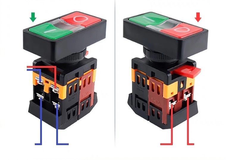 nút nhấn on off phi 22 có đèn, công tắc nhấn đôi 220VAC, nút ấn on off, nút ấn tủ điện, nút nhấn nhả, nút nhấn tủ điện – Nút nhấn
