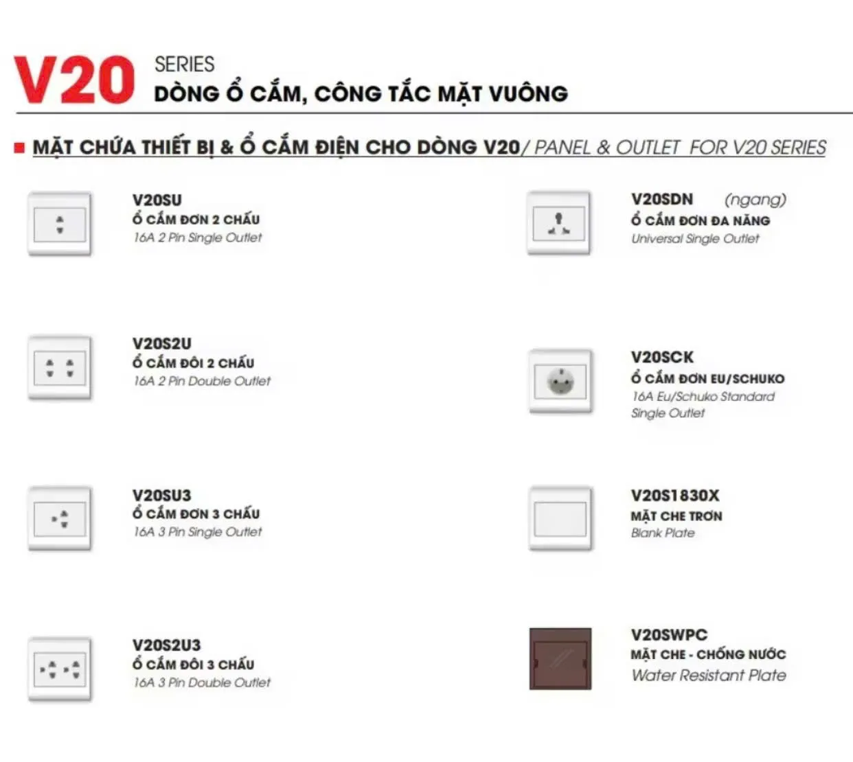 📌 Model: V20SDNV (1 ổ đa năng vuông)