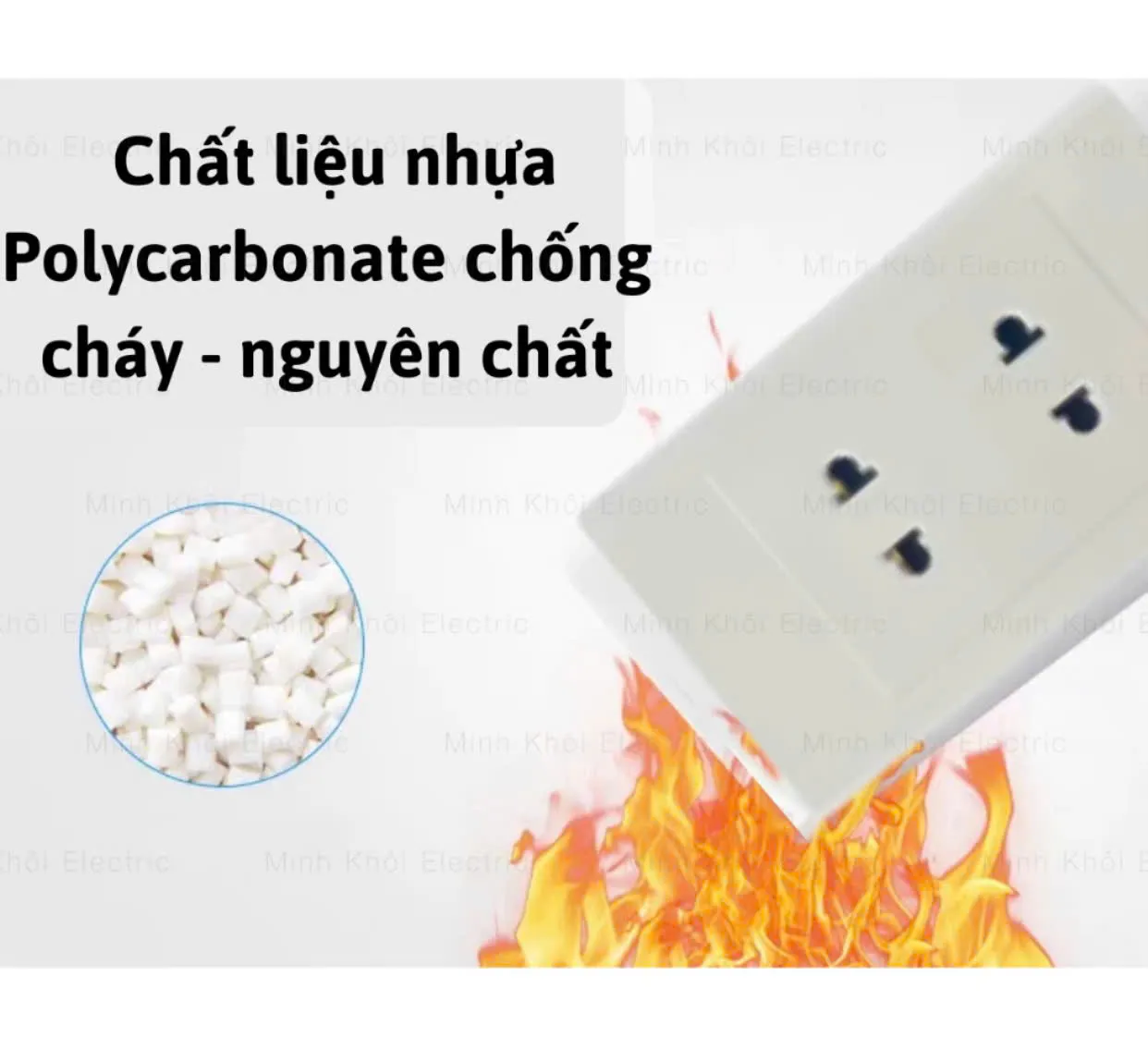 – Mặt ổ cắm được sản xuất từ nhựa chống cháy chất lượng cao.