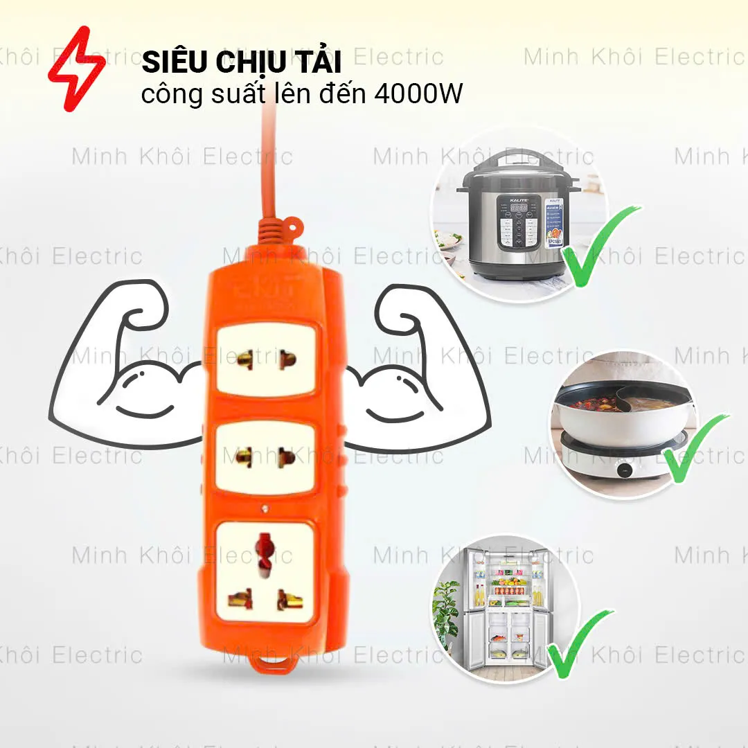 ☄️ Chịu được 3 thiết bị công suất lớn 2000 W cùng một lúc.
