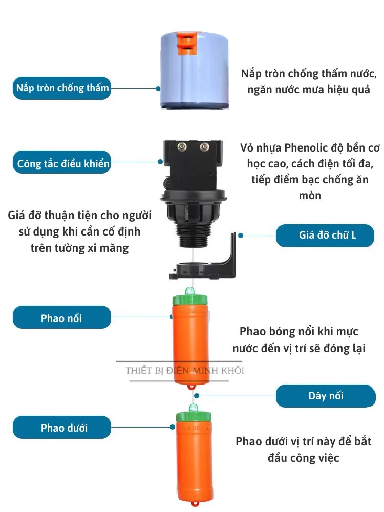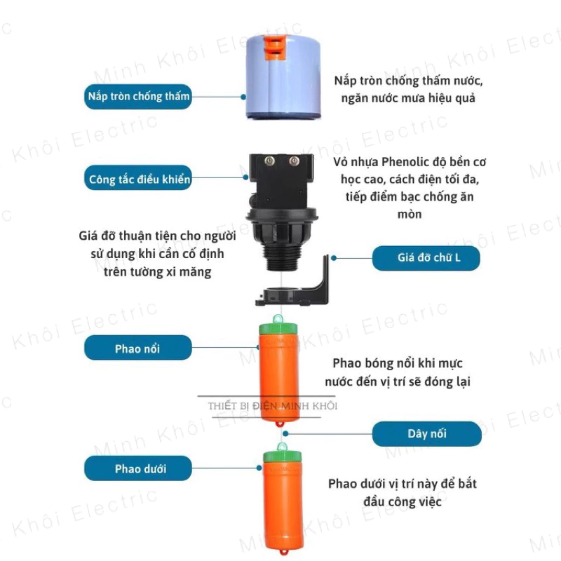 * – Phao rắn chắc duy trì sự cân bằng và ổn định trong nước-> Đảm bảo điều khiển công tắc hoạt động chính xác.