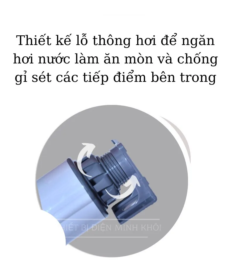 * – Hộp công tắc hoàn toàn kín, chống bụi và độ ẩm xâm nhập -> Đảm bảo hoạt động lâu dài của thiết bị.