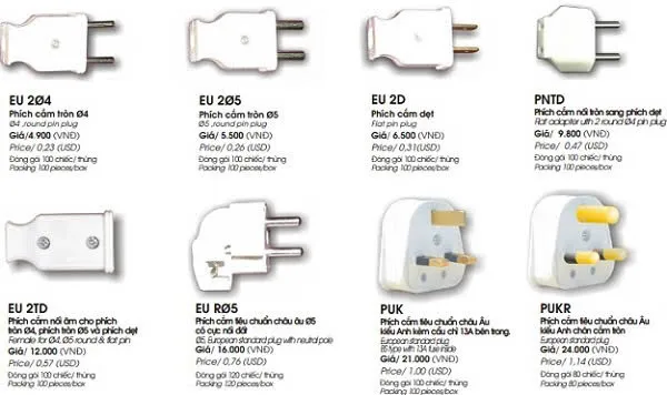 – Kích thước chân tiếp xúc: 3 chân cắm kiểu Anh(chân dẹt), có cực nối đất