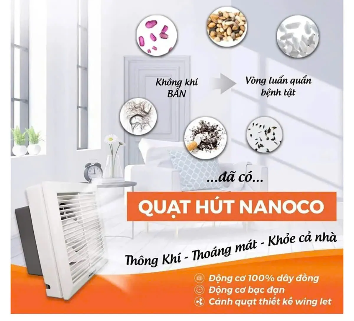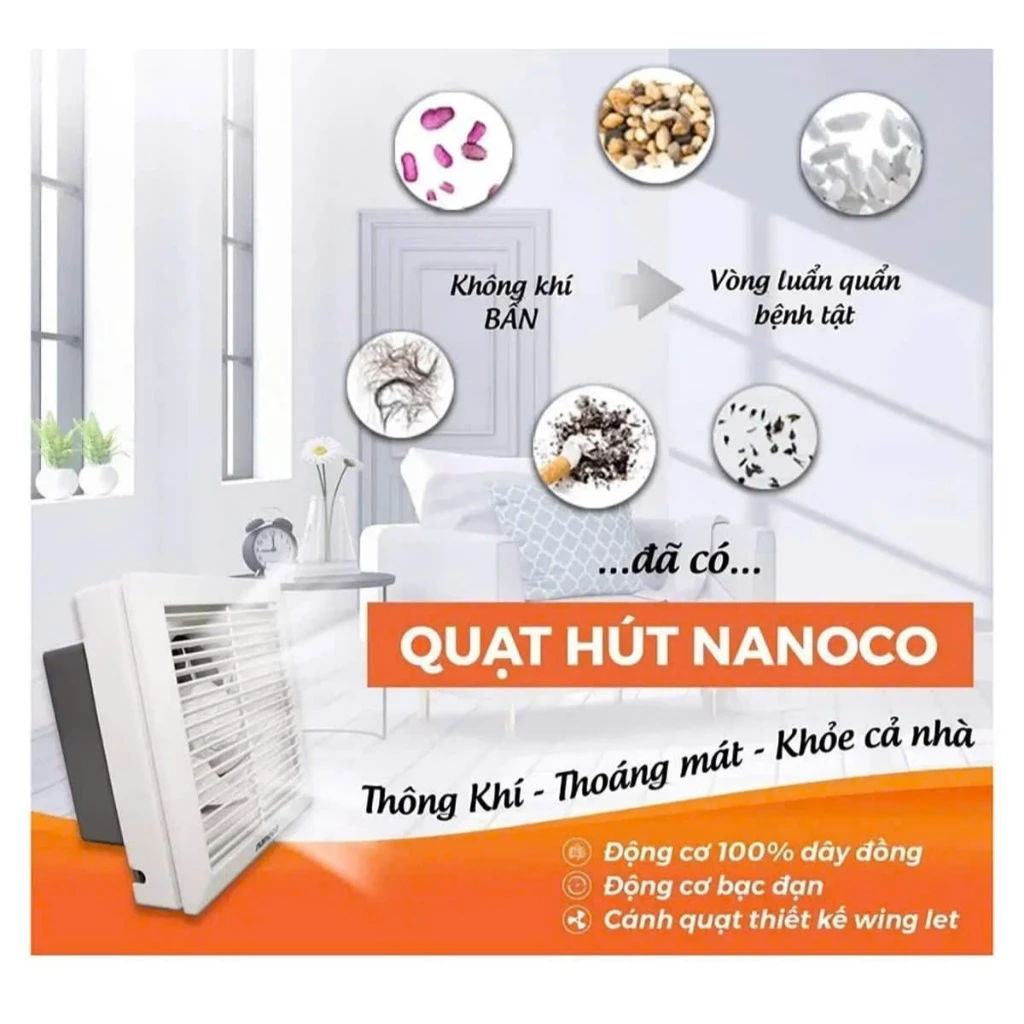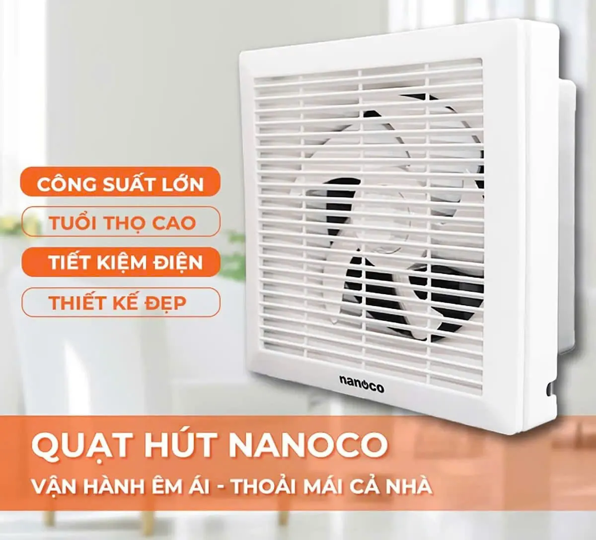 Quạt hút gắn tường Nanoco NWV1520 16W NWV2020 21W NWV2520 31W motor dây đồng bạc đạn (vòng bi) êm ái và bền bỉ