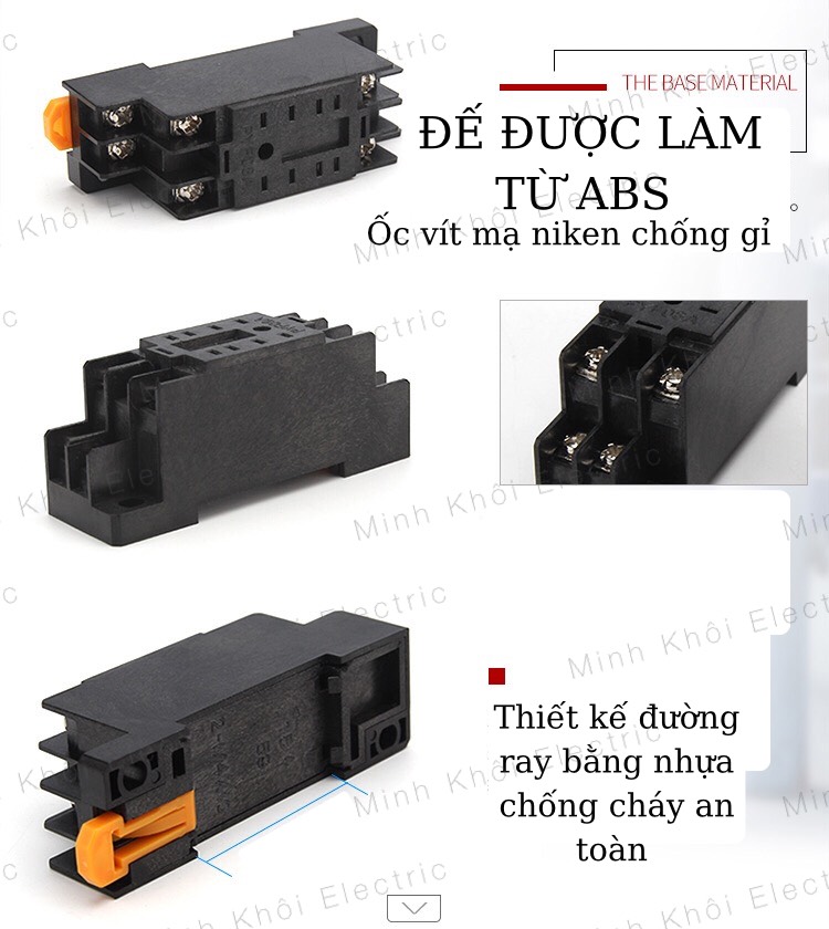 rơ le trung gian Chint 8 và 14 chân kèm đế,relay Chint 220V,24V,12V, relay trung gian chint, ro le trung gian – 24V – Đế rơle riêng