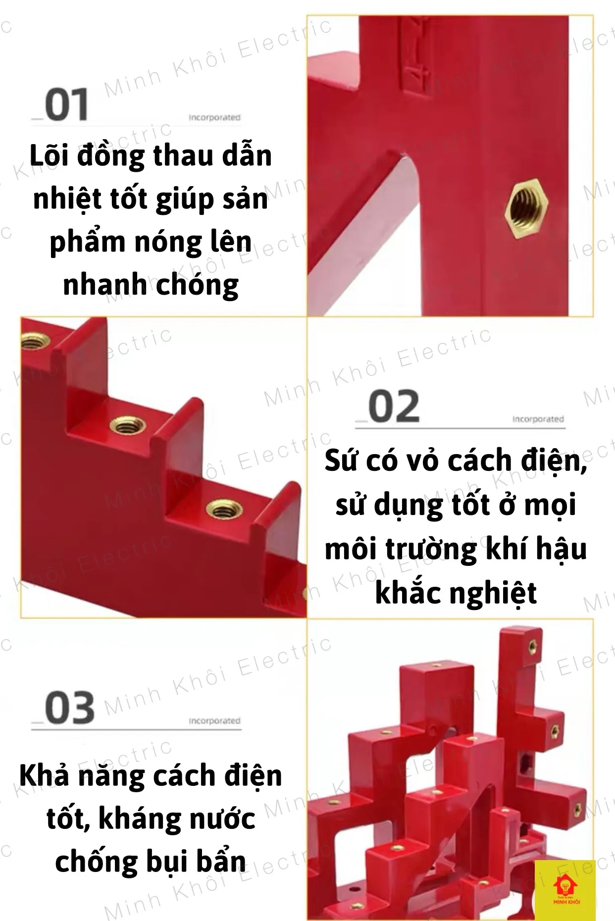 Công dùng: Làm gối đỡ cách điện thanh cái lắp trong tủ điện