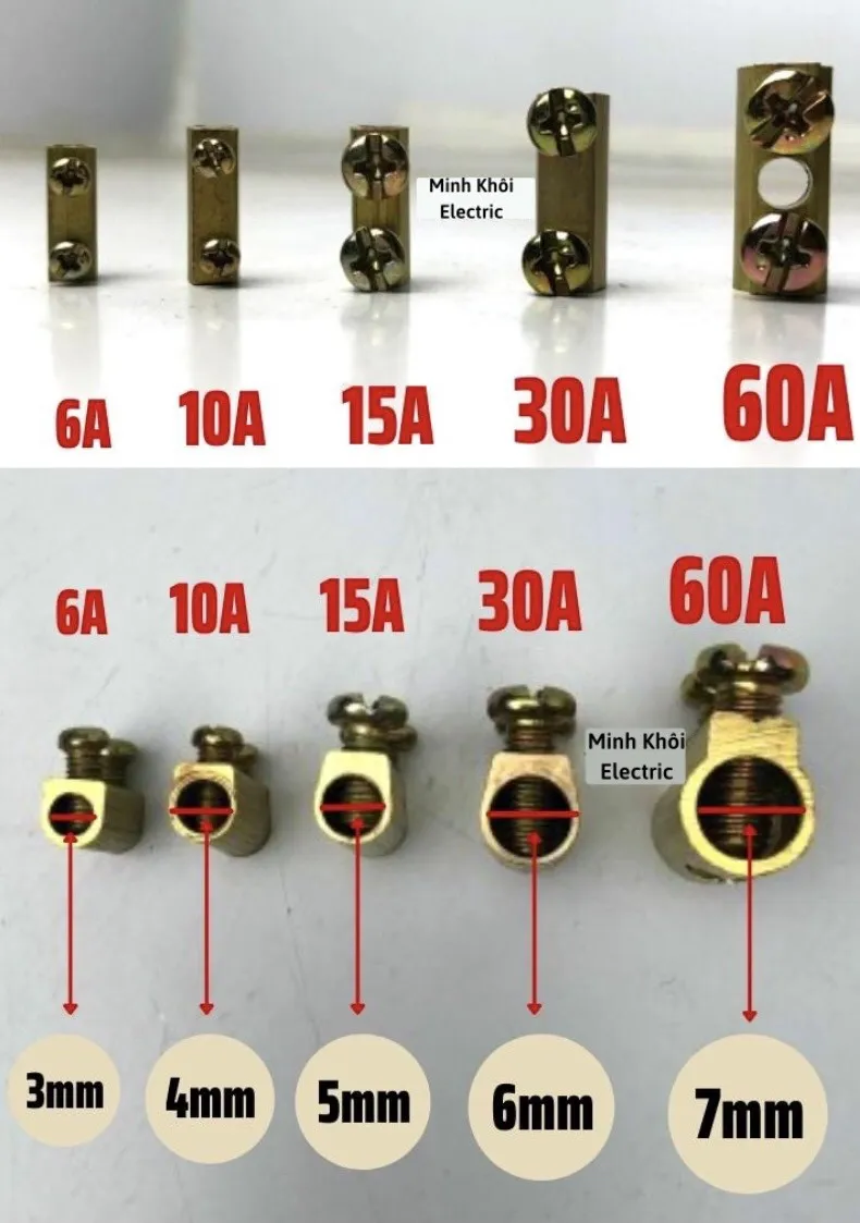 – Cường độ dòng điện chịu tải: Tuỳ vào công suất từ 6-60A.