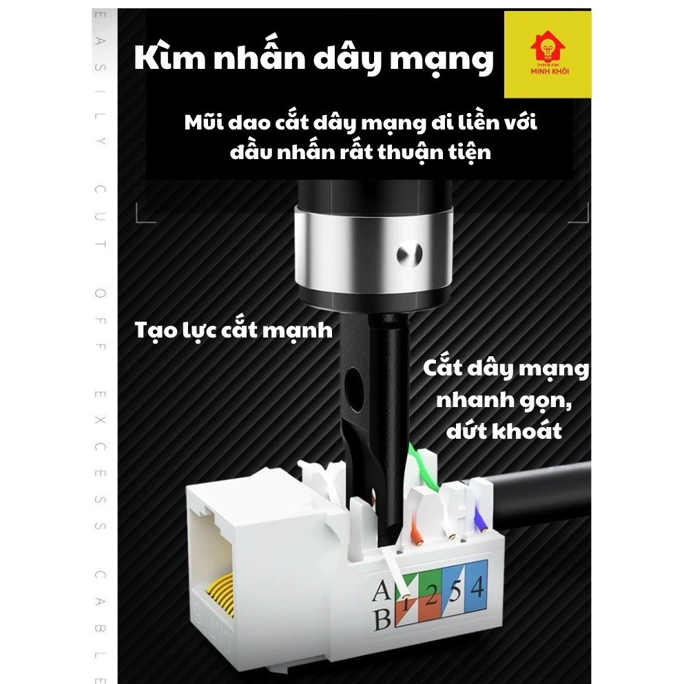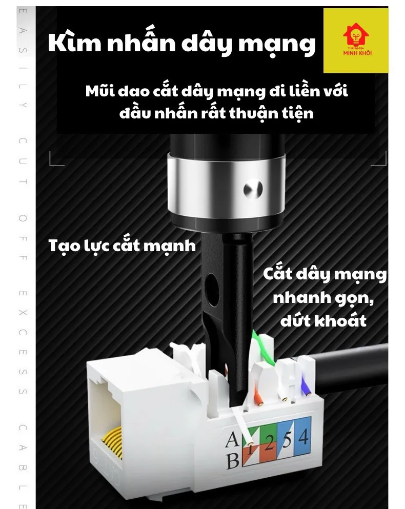 Dao nhấn dây cáp mạng ASAKI AK-9156 không chỉ làm nhiệm vụ cắt đầu cáp mạng, mà còn có khả năng bấm đầu cáp RJ45. Điều này giúp bạn hoàn thành cả hai công việc với một công cụ duy nhất, tiết kiệm thời gian và công sức.