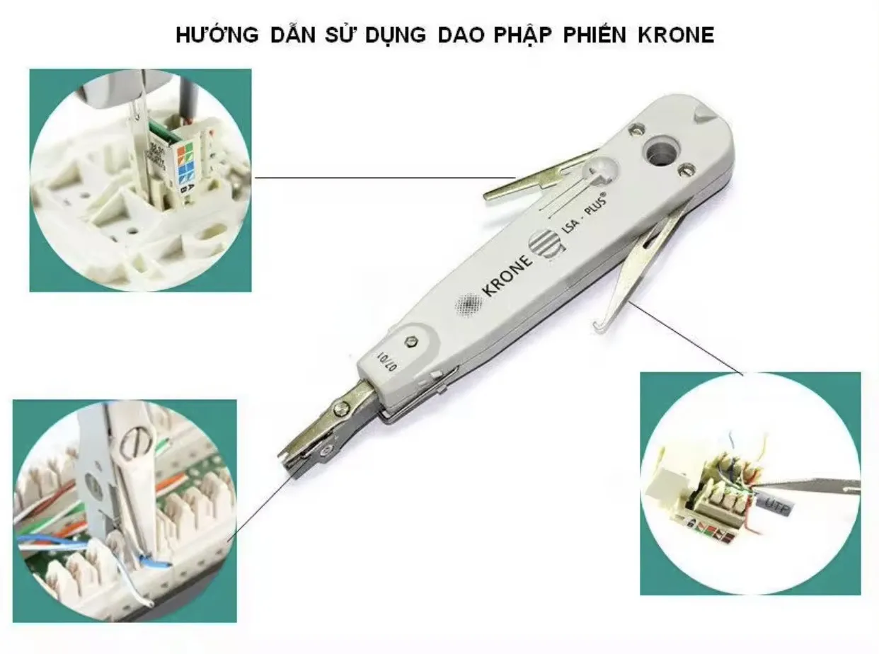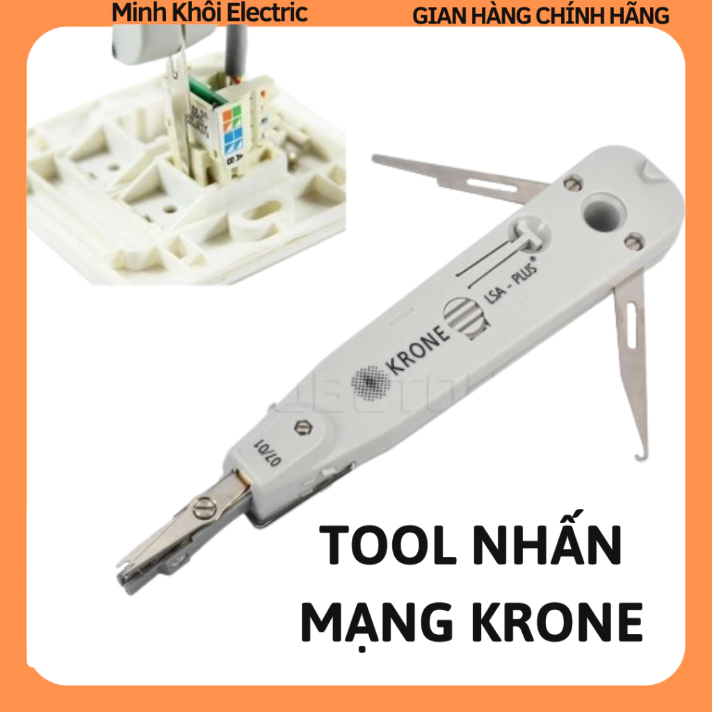 Tool nhấn phiến Krone LSA là dụng cụ được sử dụng để nhấn, cài phiến LSA-Plus hoặc cài module Jack RJ45, patch panel hoặc nhấn nhân mạng âm tường. Dao dập phiến Krone cho phép cài các loại dây có đường kính lõi đồng từ 0.35mm cho đến 0.9mm.