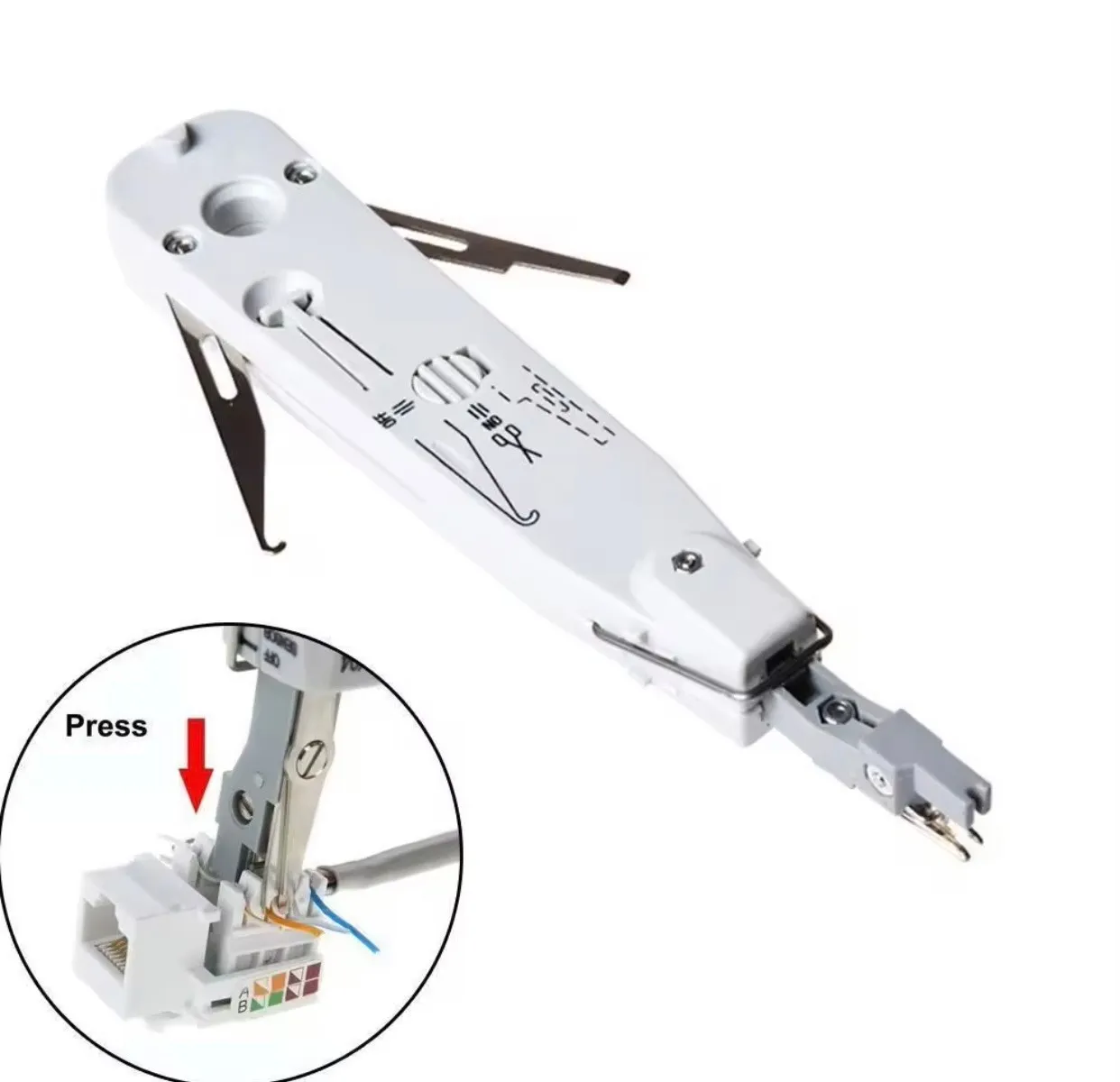 Tính năng: Nhấn dây cáp mạng Cat 5e, Cat 6; dây điện thoại Cat 3, cáp điện thoại, cáp viễn thông vào phiến Krone, patch panel, module RJ45, module RJ11.