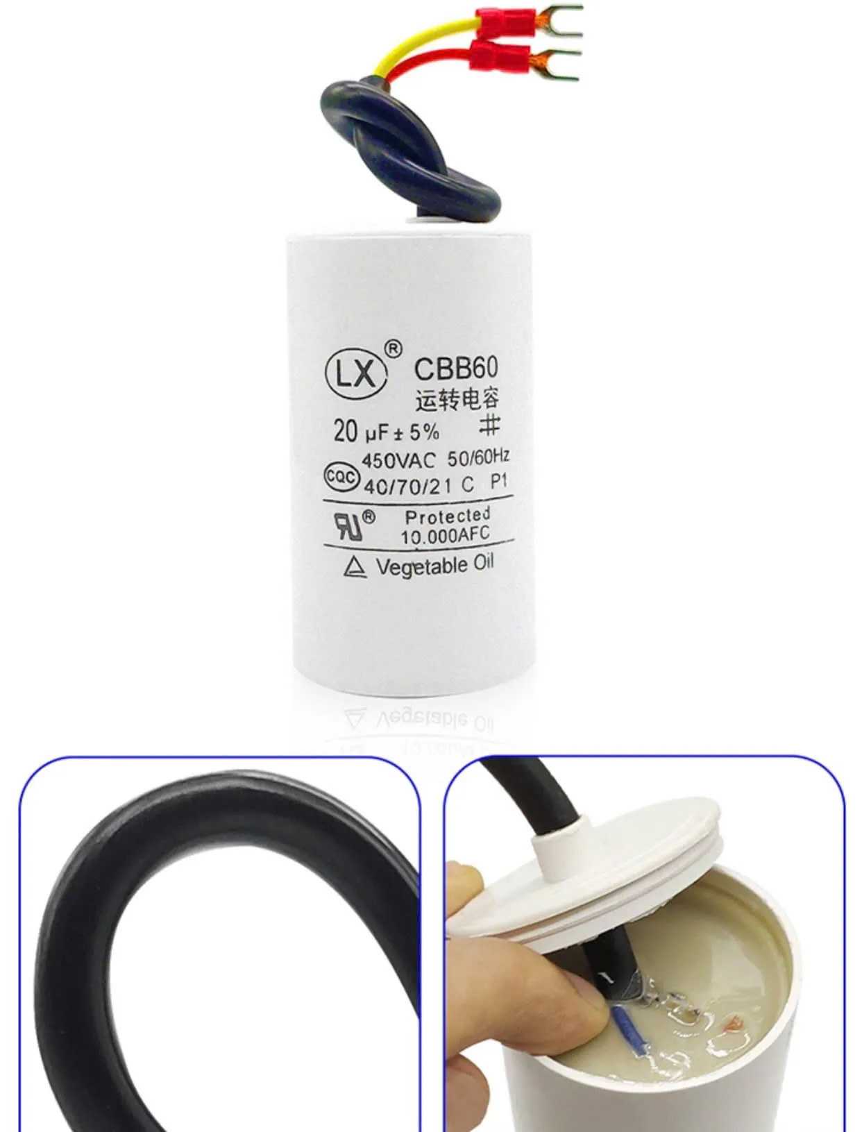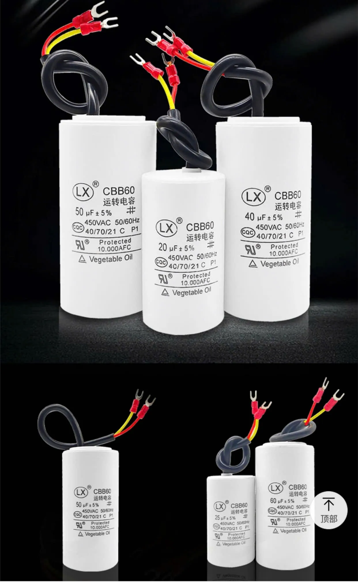 Tụ điện CBB60 thường được dùng trong máy bơm nước, máy nén khí, máy chạy bộ nói riêng và các động cơ điện nói chung.