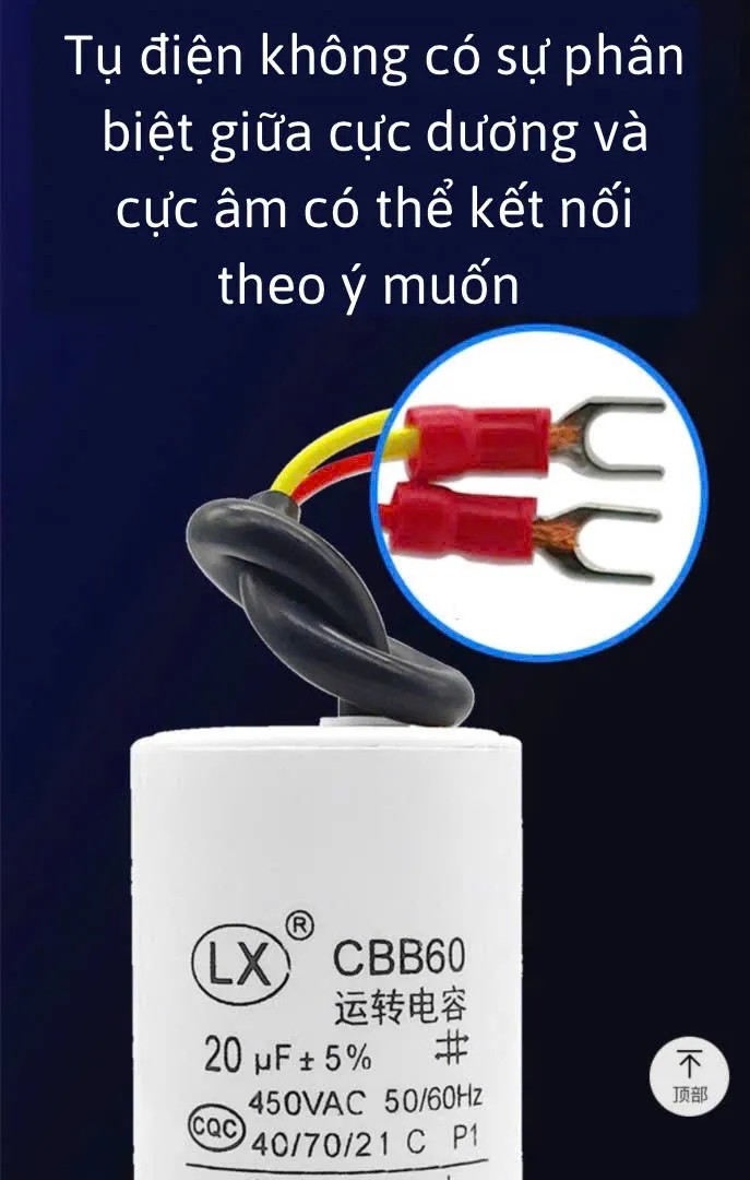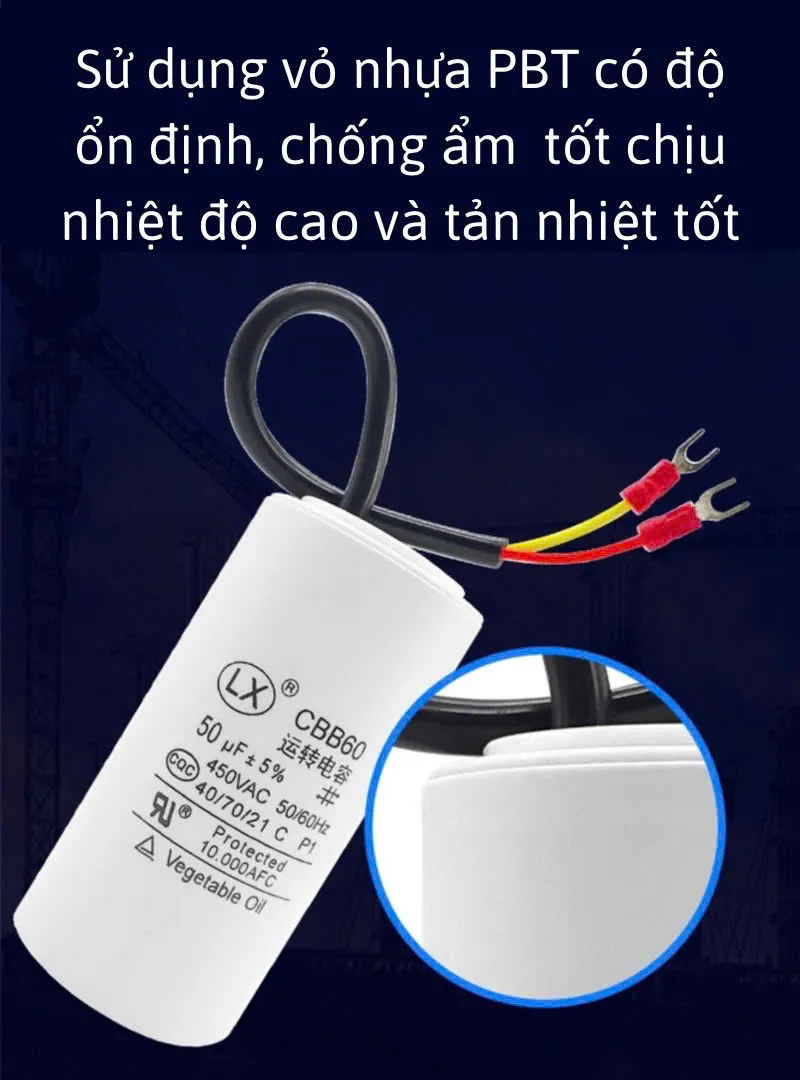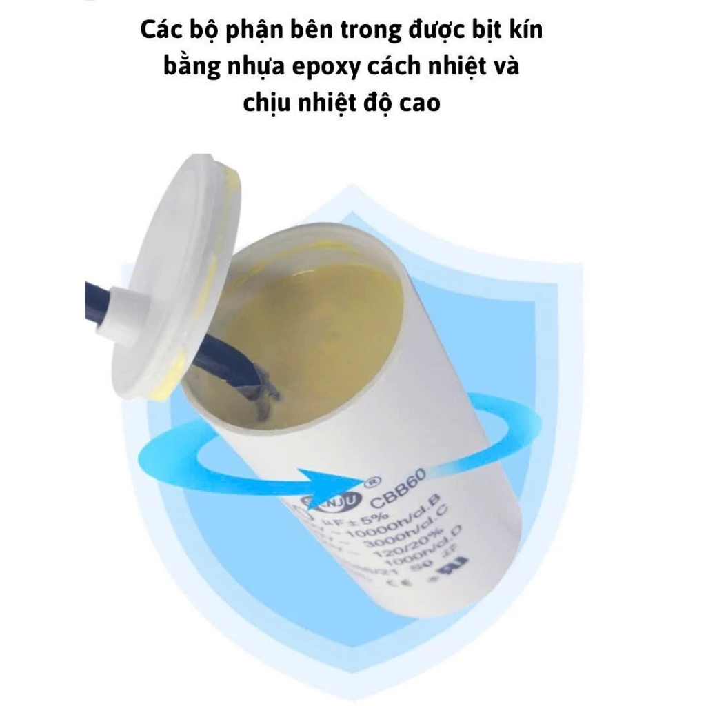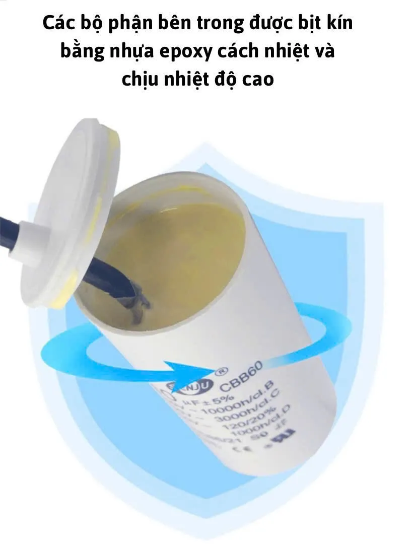 CBB60 hỗ trợ cho việc khởi động động cơ khi bắt đầu hoạt động. CBB60 thường được làm bằng chất liệu metallized polypropylene film cho tuổi thọ cao.