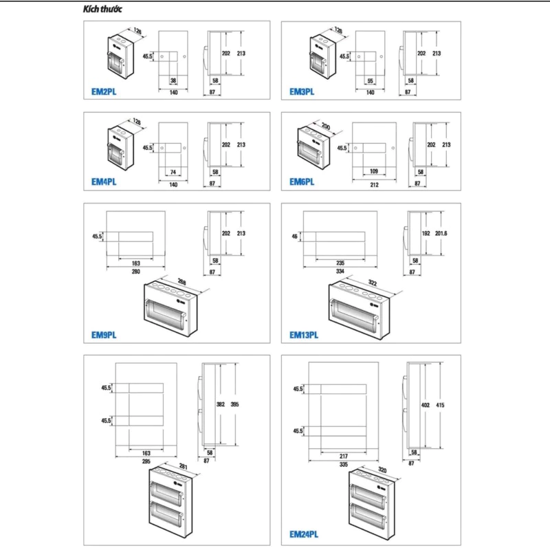 – Tên sản phẩm: Tủ điện 9 đường EM9PL