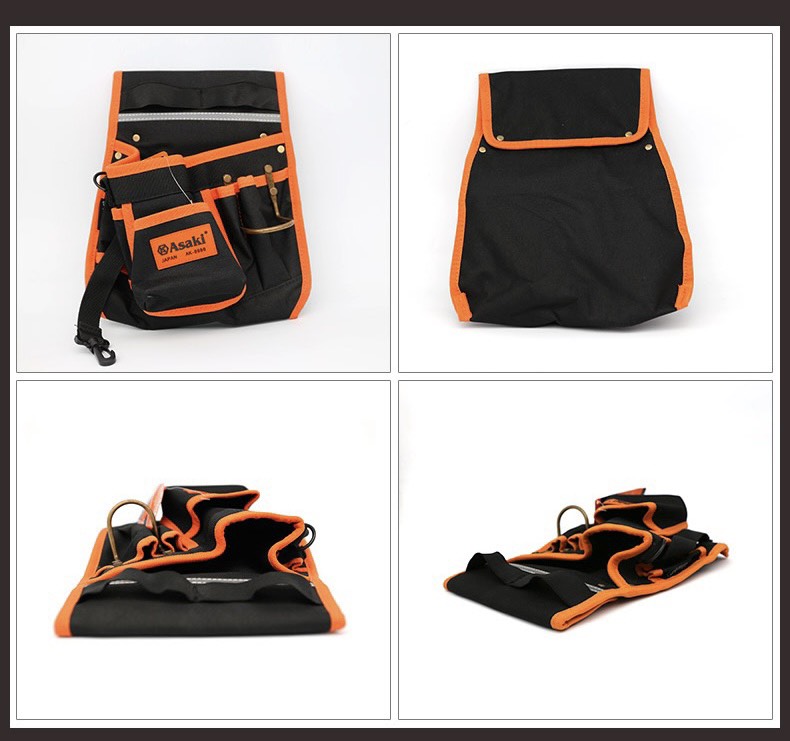 túi đựng dụng cụ đa năng Asaki, túi đựng đồ nghề, túi đeo thắt lưng đựng đồ nghề, túi đựng dụng cụ kỹ thuật chống thấm – AK-9986: 28x25x9cm