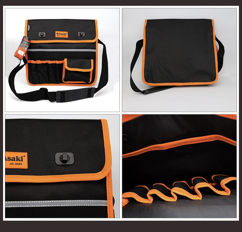 túi đựng dụng cụ đa năng Asaki, túi đựng đồ nghề, túi đeo thắt lưng đựng đồ nghề, túi đựng dụng cụ kỹ thuật chống thấm – AK-9988: 35x11x29cm
