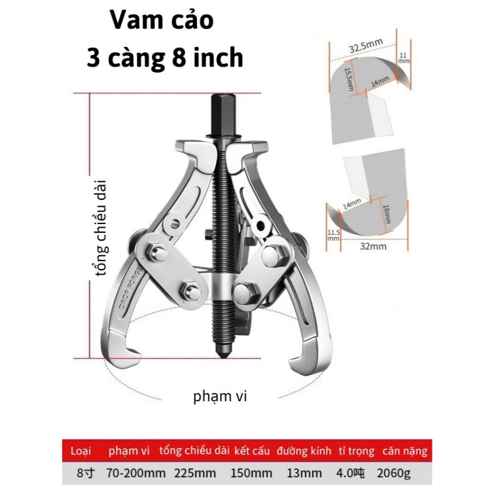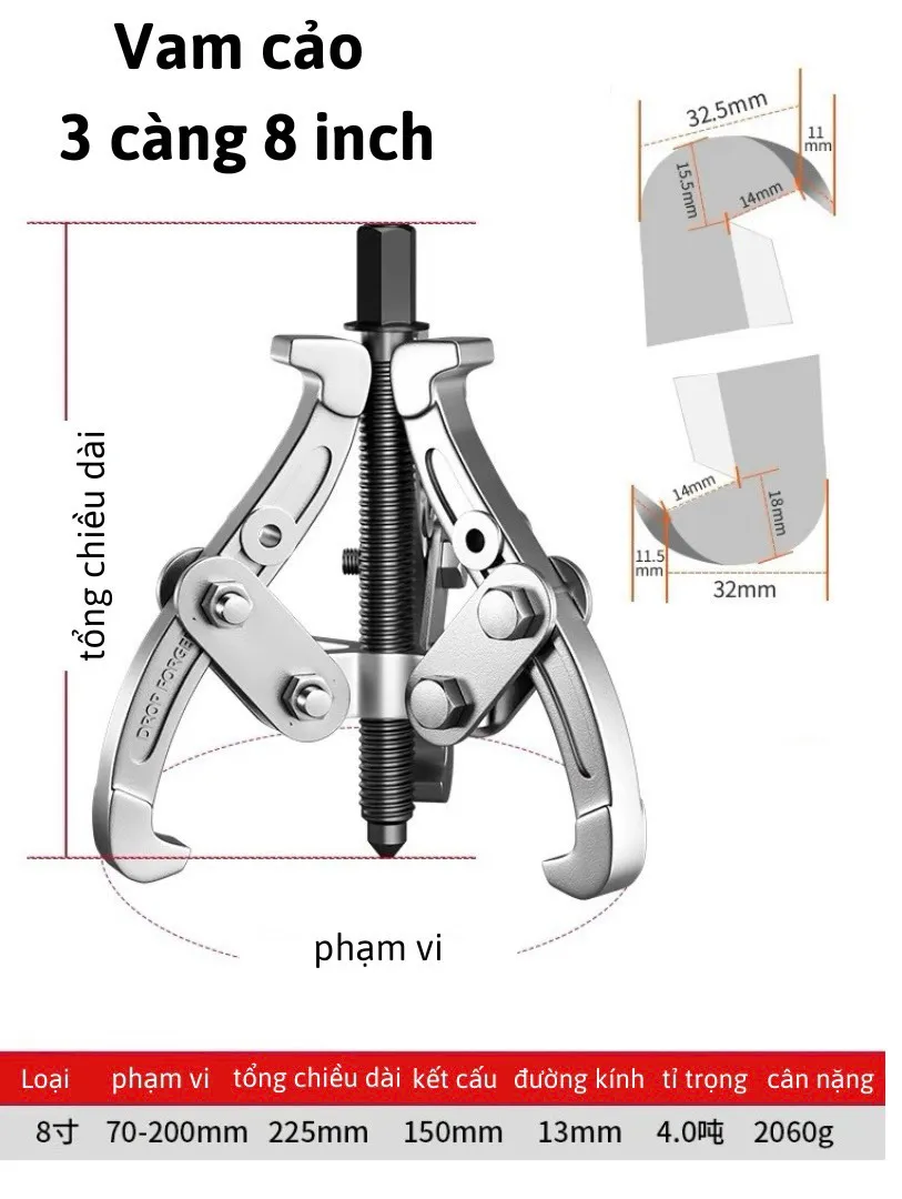 Cảo 3 chấu là dụng cụ thường được thấy nhiều trong các xưởng sửa chữa, bảo dưỡng, lắp ráp các máy móc, thiết bị,…chuyên dùng để tháo lắp các vòng bi, bạc đạn,… Cảo được làm từ thép Chorme Vanadium nên cứng cáp, chịu được lực cao, tránh bị cong vênh trong quá trình sử dụng.