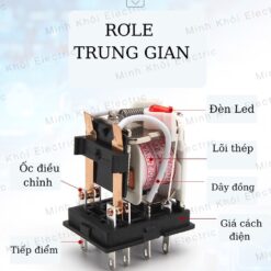 rơ le trung gian Chint 8 và 14 chân kèm đế,relay Chint 220V,24V,12V, relay trung gian chint, ro le trung gian – 12V – 14 chân kèm đế